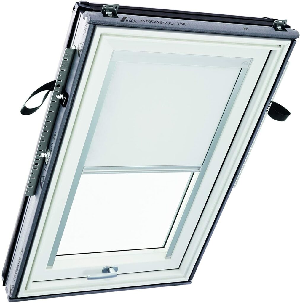 Das Hoch-Schwingfester Designo R7 von Roto kann sowohl mit einer Solar-Außenrollade als auch mit einem innen angebrachten Verdunklungsrollo nachgerüstet werden. Das Modell R78 mit den Maßkennzahlen 07/11 ist nach meinen aktuellen Recherchen bei uns verbaut.